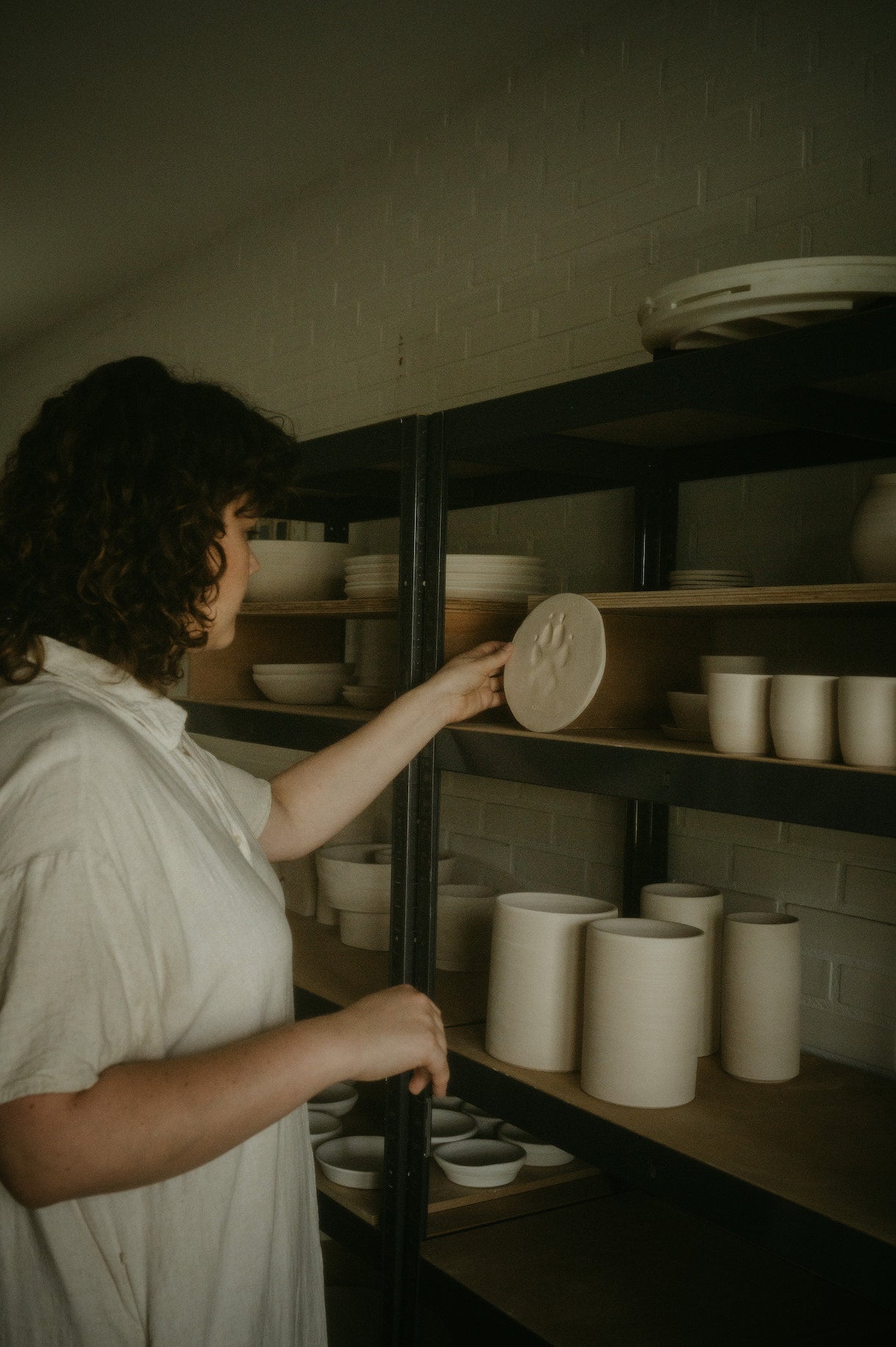 Ik begin altijd met het kneden van mijn klei om er zeker van te zijn dat er geen lucht in zit. Als dat gedaan is, begin ik met het maken van een pot. Sommige potten bouw ik het liefst op met de hand, andere draai ik op de draaischijf. Als de vorm van de pot gemaakt is, moet hij nog een dag drogen voordat ik hem af kan afwerken. Als afwerking signeer ik de pot en zorg ik ervoor dat hij een mooie kontje heeft :) Daarna laat ik de potten nog 1-2 weken langzaam drogen voordat ze klaar zijn voor de biscuitbak.